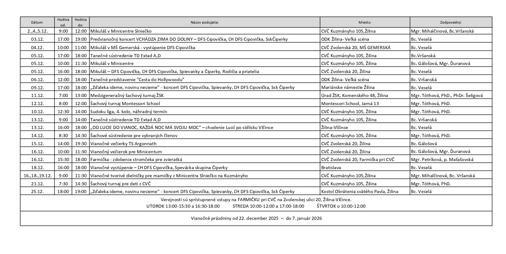 Plán podujatí 12/2025