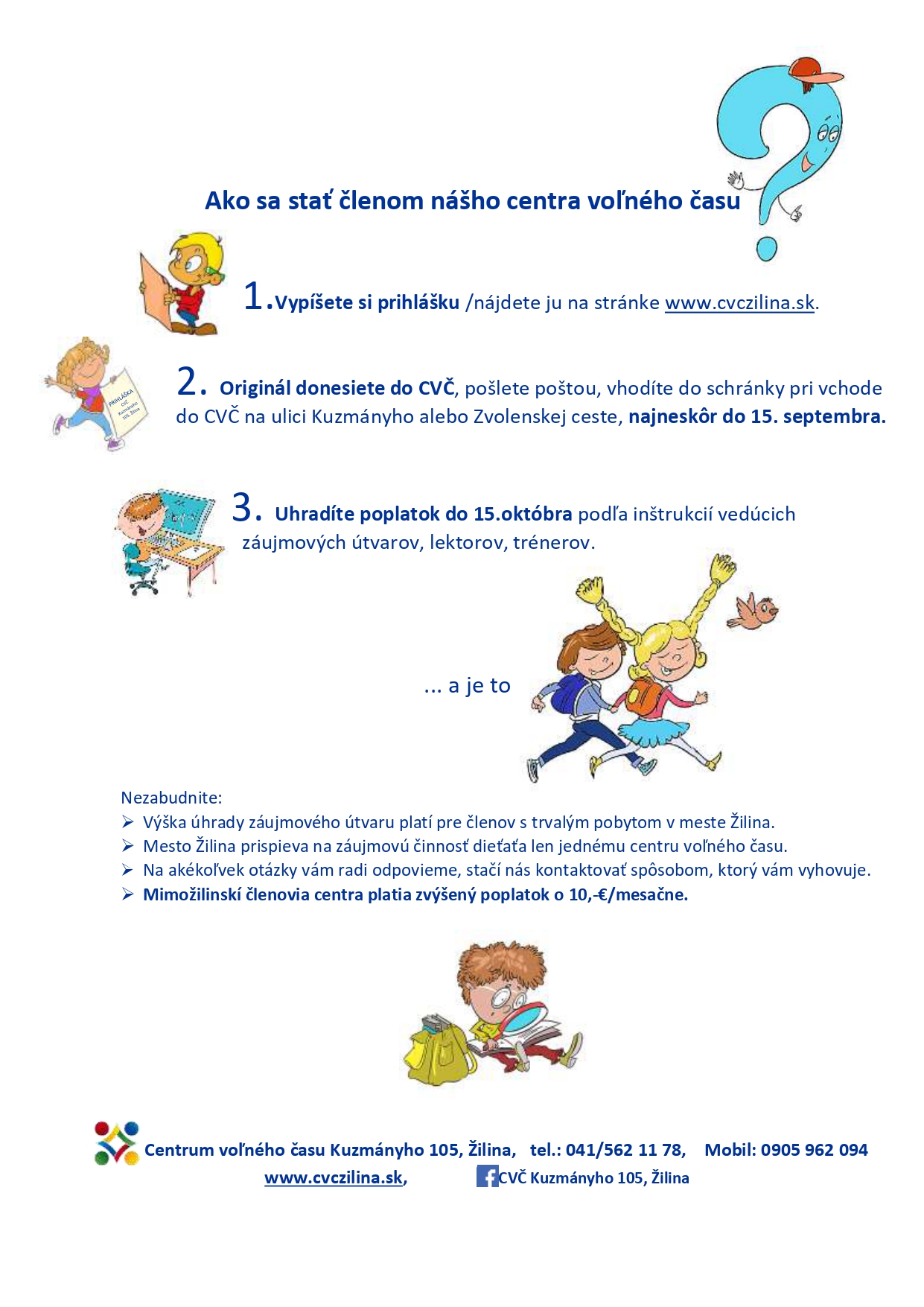 Mimožilinskí členovia centra platia zvýšený poplatok o 10,-€/mesiac.